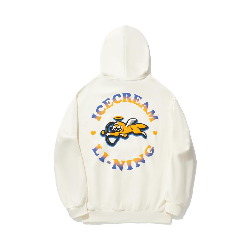 Li Ning X Icecream Collaboration Heartbreaker Series Letter Logo Casual Sports Hoodie Unisex Hoodies Off-White AWDU843-1