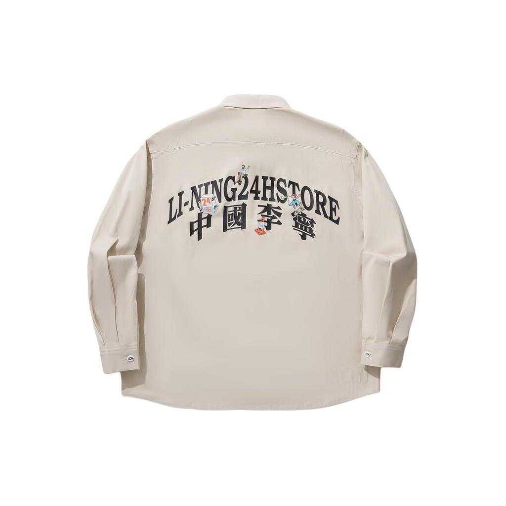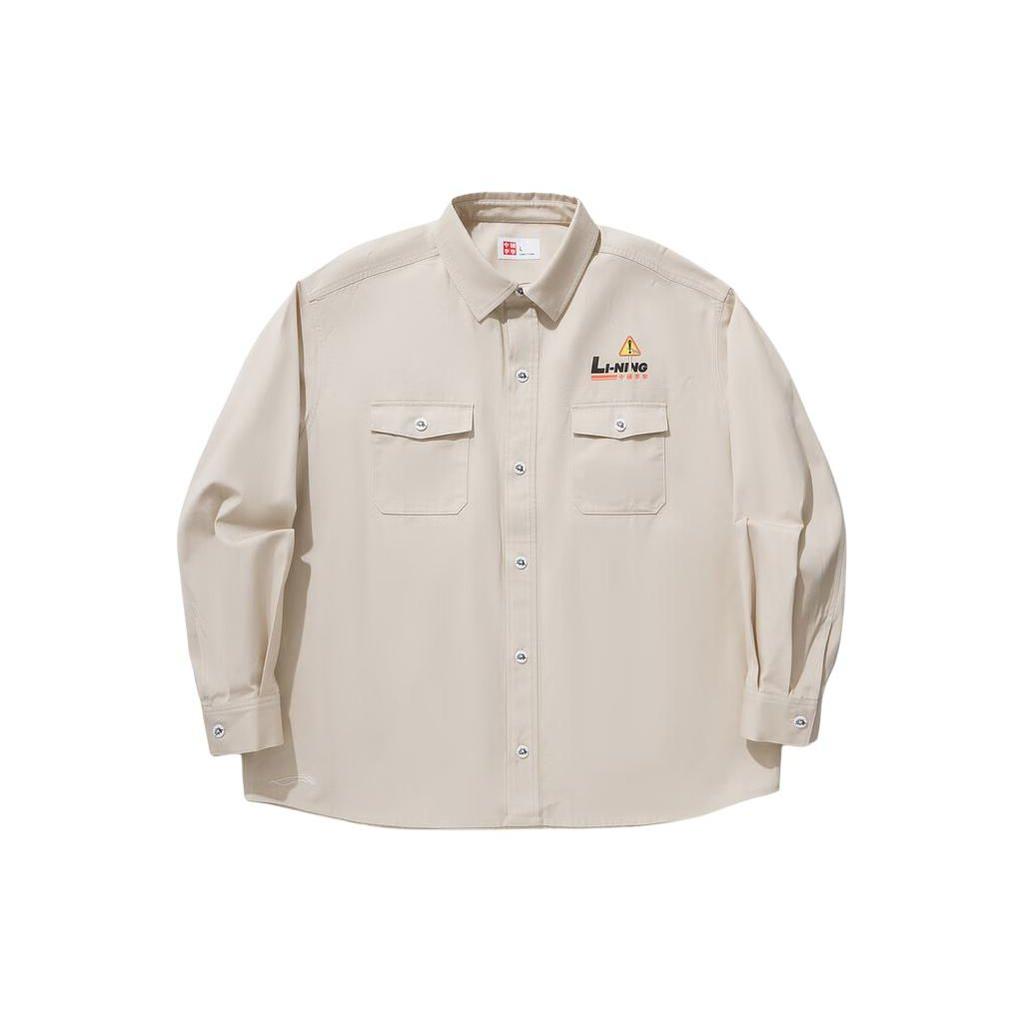 Li Ning Letter Logo Printed Square Neck Casual Long Sleeve Shirt Men Shirts Oat-Gray ASHU039-2