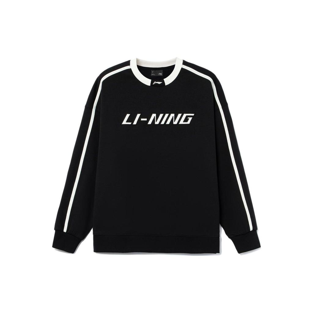 Li-Ning Повседневный спортивный свитер с круглым вырезом и принтом букв, толстовка унисекс, черный цвет YWDT541-2