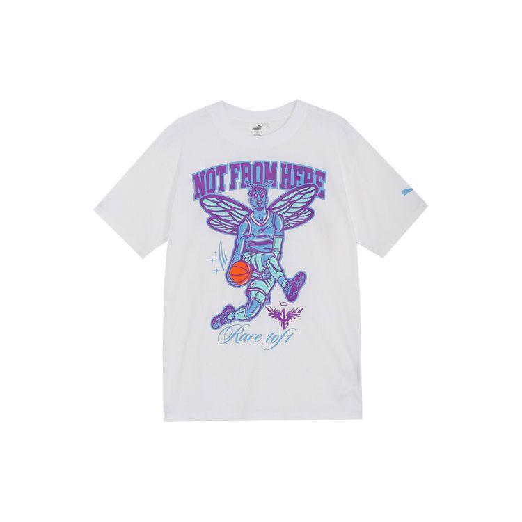 Puma Футболка Melo Charlotte Letter Print Basketball Character Design Casual с круглым вырезом и коротким рукавом, с заниженной линией плеч, мужские топы, белые 627744-03