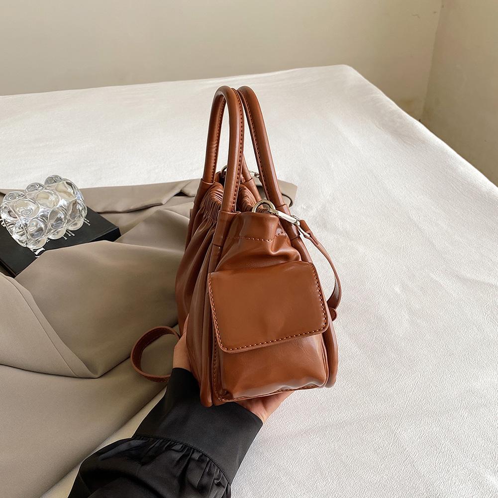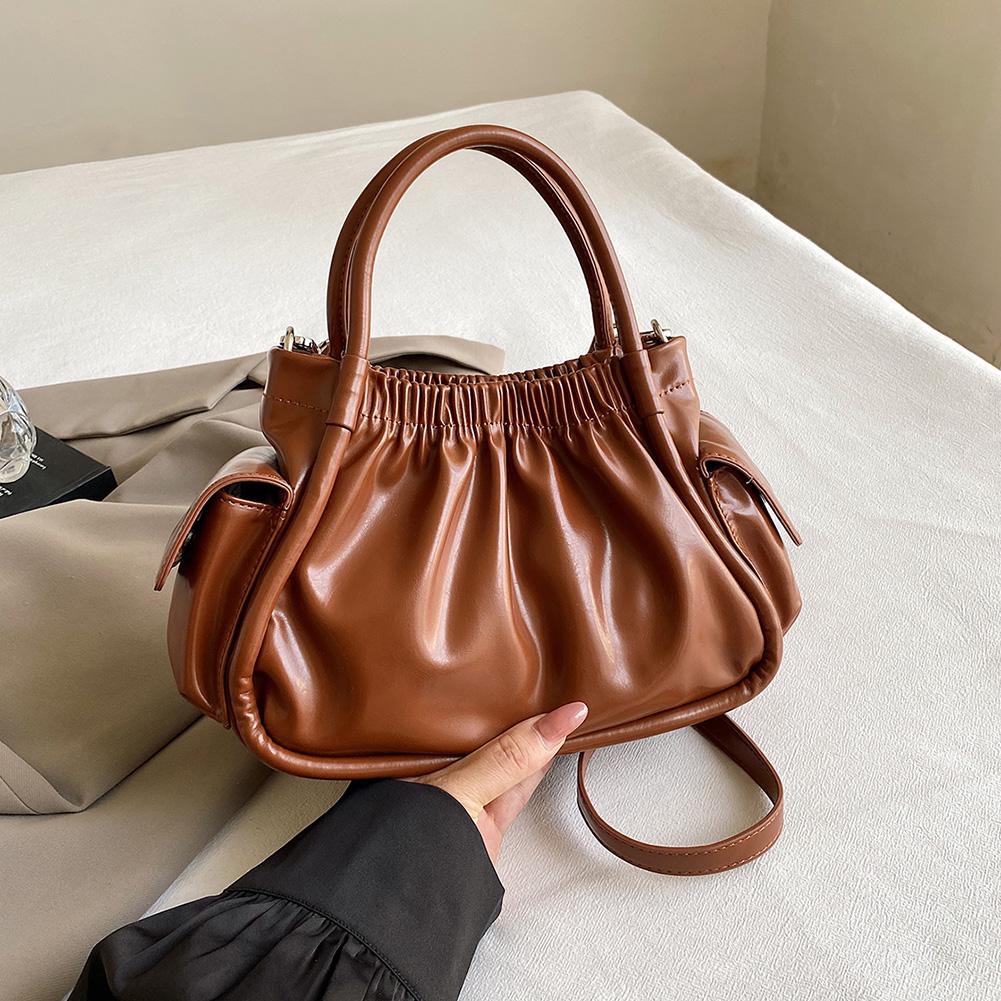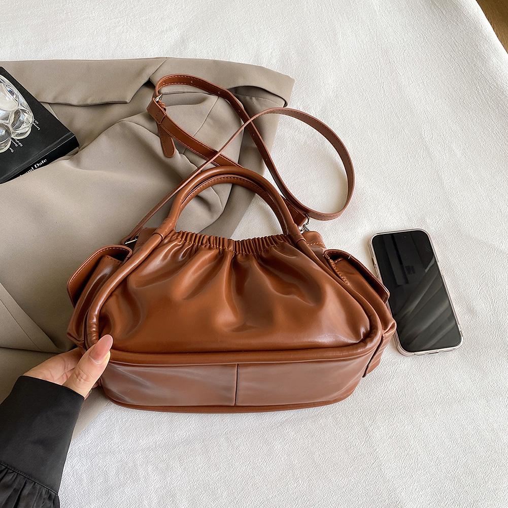 Женская плиссированная сумка через плечо из искусственной кожи, модная сумка-тоут в облаке, шикарная сумка через плечо (коричневый)