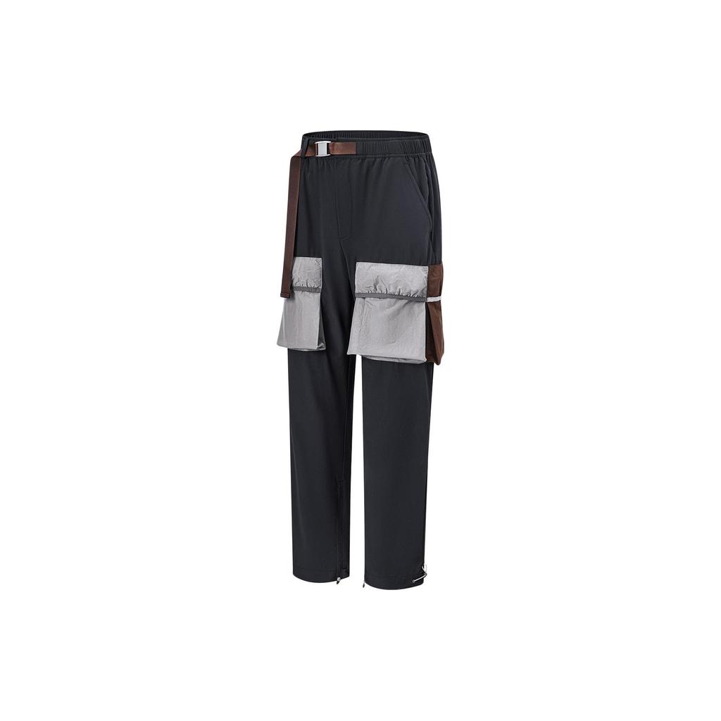 Li Ning XM@rket Collaboration Series Большие карманы Стиль пояса шнурок Прямые повседневные брюки мужские брюки черные AYKT599-2