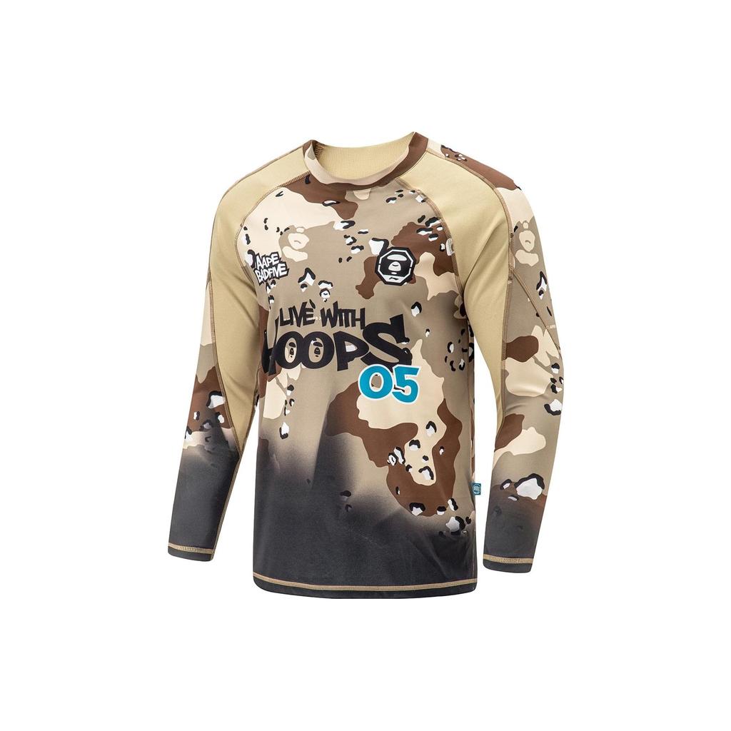Футболка Li Ning Badfive с цветным рисунком в виде блока, влагоотводящая, антистатическая, свободная, с длинным рукавом, реглан, мужские топы, хаотично-коричневый ATLT219-2