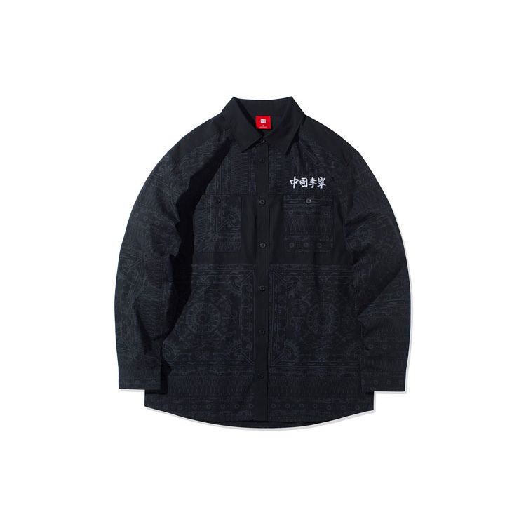 Li Ning вышитая свободная покрой на пуговицах повседневная рубашка мужские рубашки черного цвета ASHR063-1