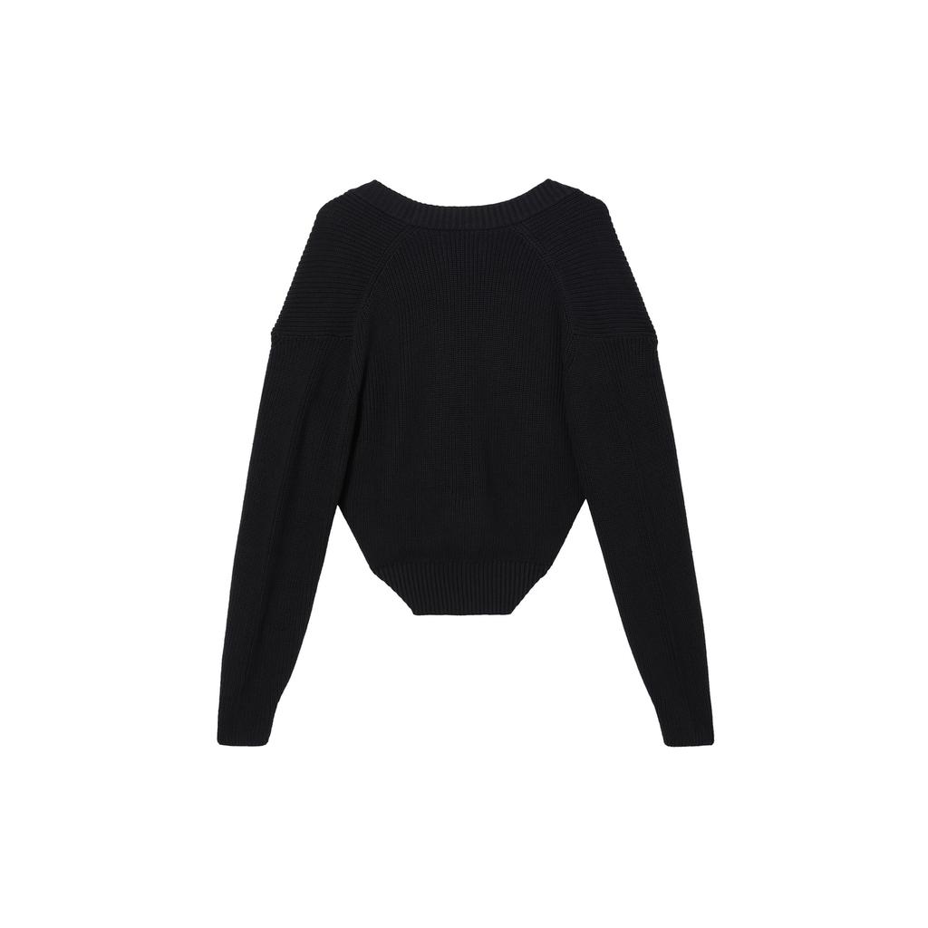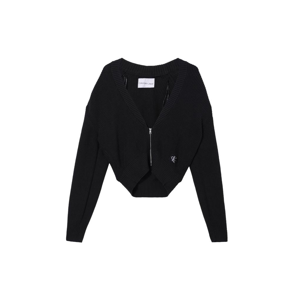 Calvin Klein Минималистичный вышитый логотип V-образный вырез однотонный кардиган на молнии свитер женский свитер Space-Black J222623-BEH