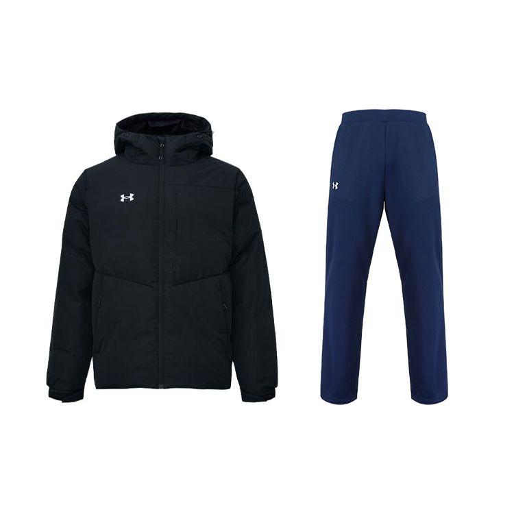 Under Armour Однотонный короткий толстый уличный теплый пуховик с капюшоном и длинными брюками на шнурке, повседневный спортивный костюм для мужчин 23600801-001+21500737-408