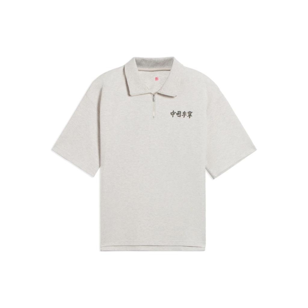 Li Ning Plain Text Logo Half Zip свободная рубашка поло с коротким рукавом унисекс рубашки поло светло-серые APLS018-2