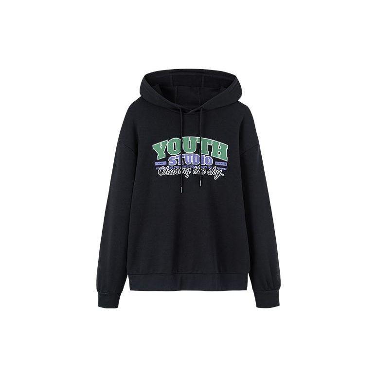 Anta Life Series FW22 Толстовка с капюшоном с буквенным принтом и завязками, унисекс, черные 952238702-3