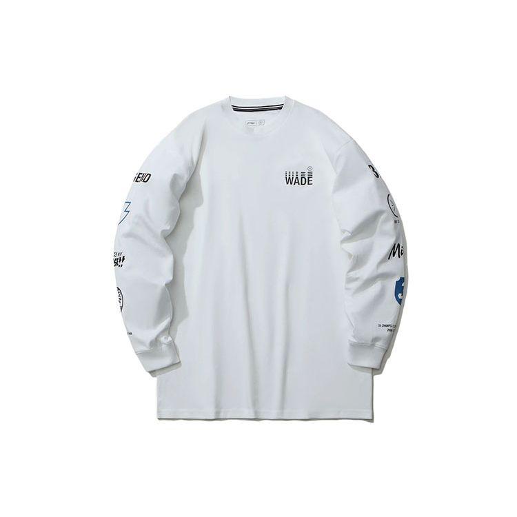 Мужская толстовка с круглым вырезом Li Ning Wade Series Printed Loose Round Neck Pullover Sweatshirt Standard-White AHSR497-3