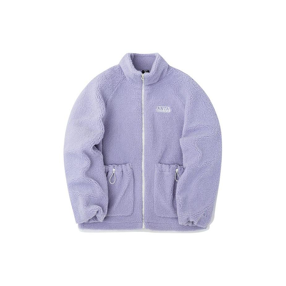 Anta Однотонная флисовая куртка с вышитым логотипом, двумя карманами, застежкой-молнией и воротником-стойкой, женские куртки, фиолетовые 162248727-1