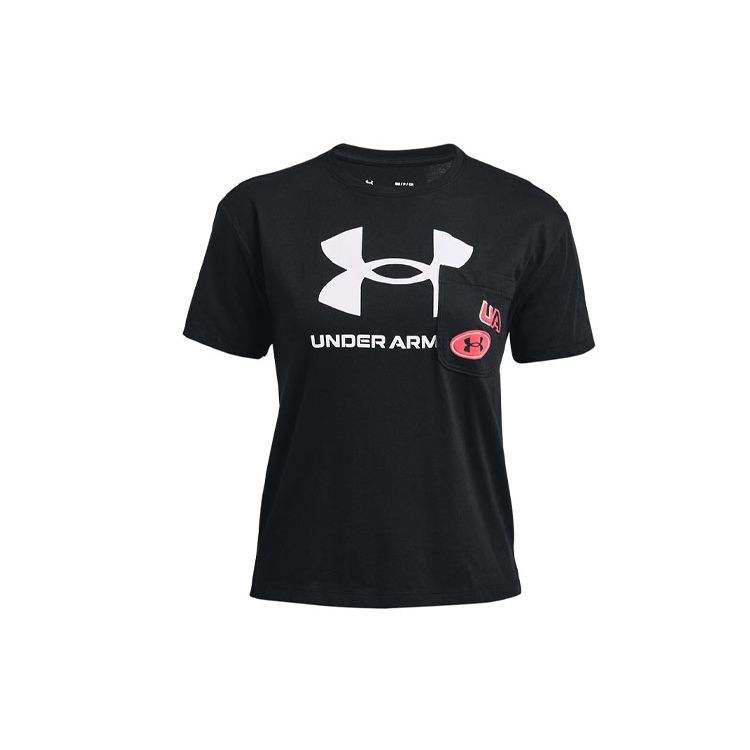 Under Armour Веселая футболка с большим принтом логотипа и карманом, свободная, удобная, с коротким рукавом, женская футболка, черная 1366115-001