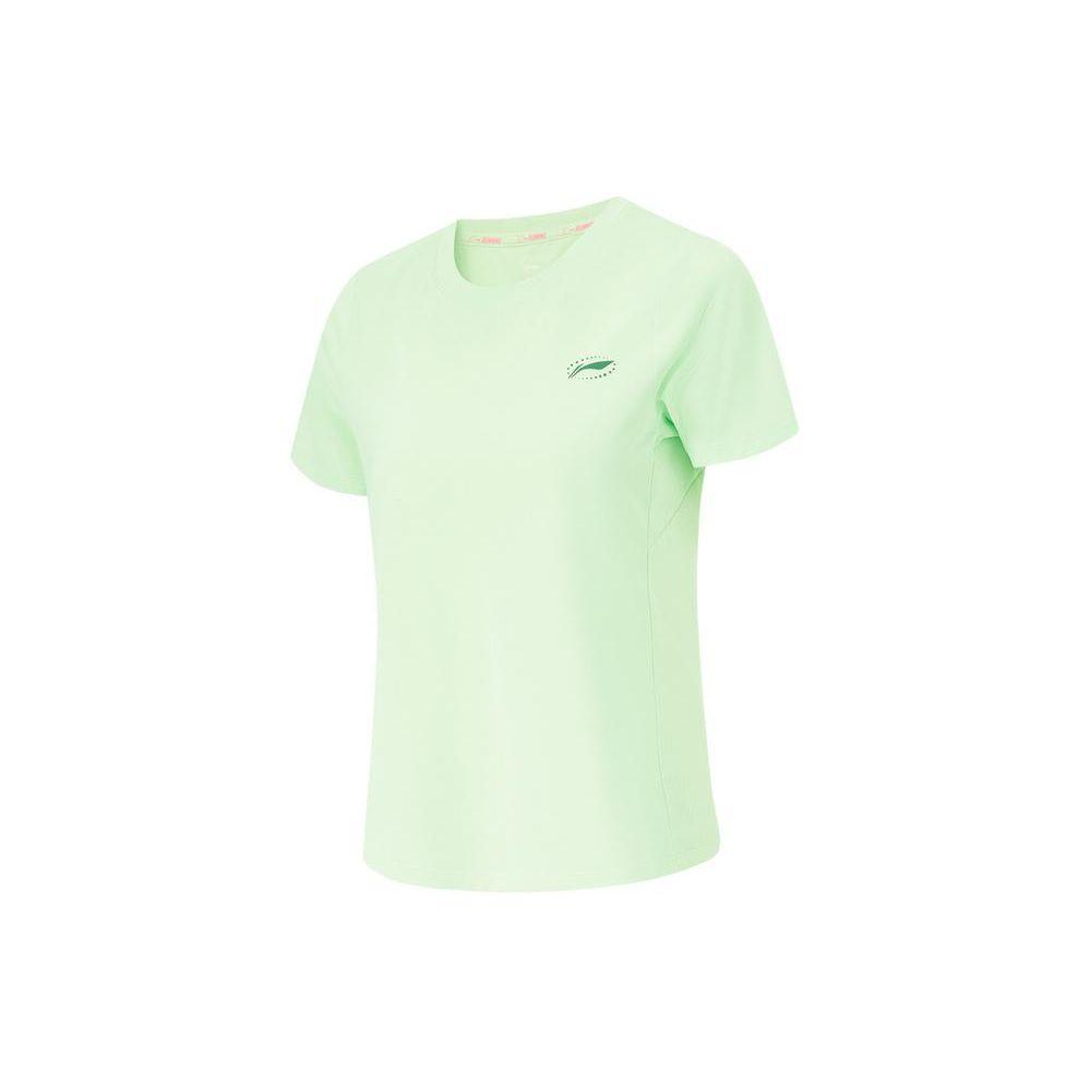 Футболка Li Ning Running Series, однотонная, быстросохнущая, с круглым вырезом, коротким рукавом, реглан, женские топы, Fairy-Fruit-Green ATSU202-5