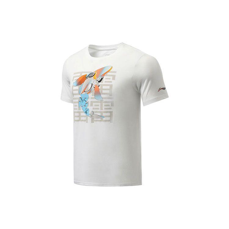 Футболка мужская с коротким рукавом и круглым вырезом Li Ning Running Series со светоотражающим принтом, стандартная белая ATSR489-2
