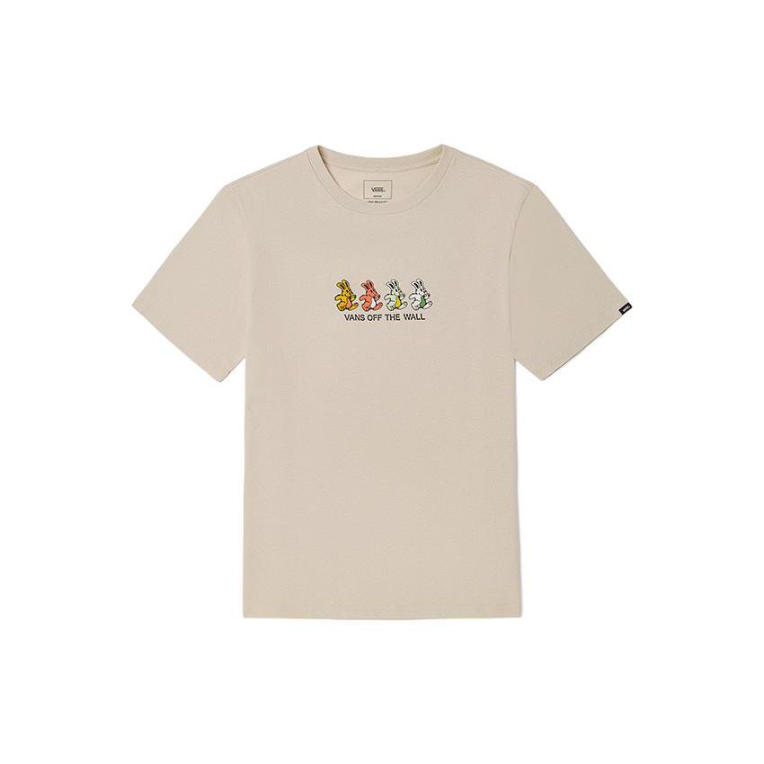 Vans Футболка с коротким рукавом и круглым вырезом в американском стиле с красочным принтом кролика, футболка унисекс SS22, овсянка VN0A7PYP2N1