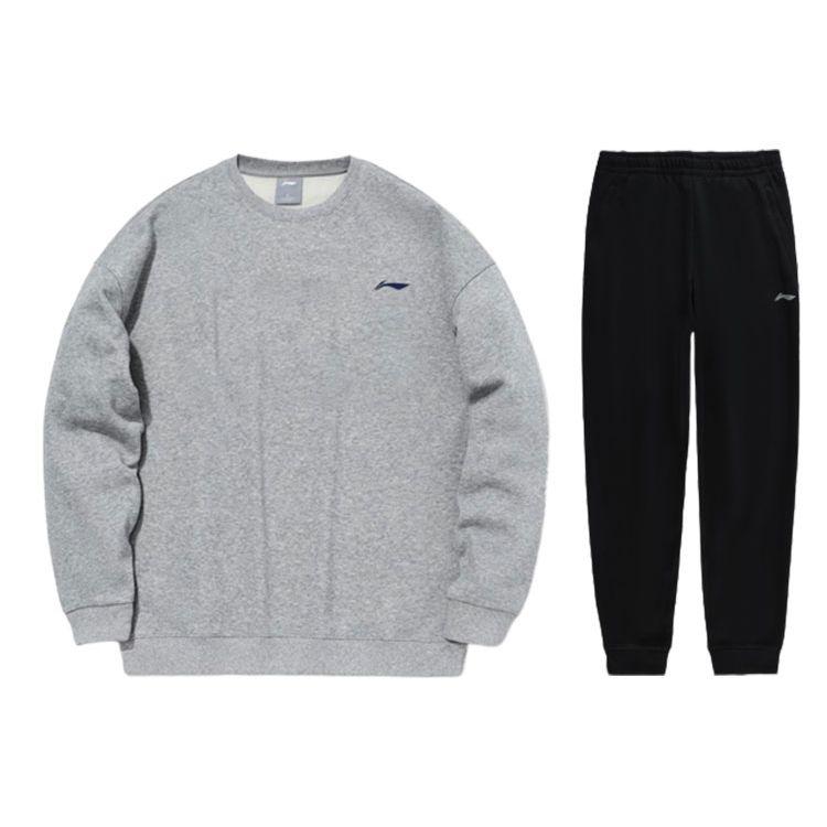Li Ning однотонный свитер с круглым вырезом и флисовые спортивные штаны с манжетами, мужской комплект из толстовки и брюк серо-черного цвета AWDT615-2+AKLSC99-1