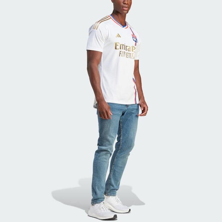 Adidas Футболка мужская Lyon с коротким рукавом и тремя полосками и буквенным узором, белая, сезон 23-24 IB0920
