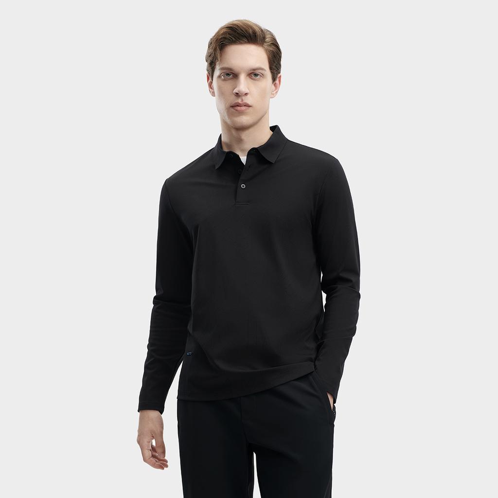 Fila 2023 Зима Новинка Вязаная рубашка поло с длинным рукавом Простой базовый повседневный топ Мужские топы Черный F11M342212FBK