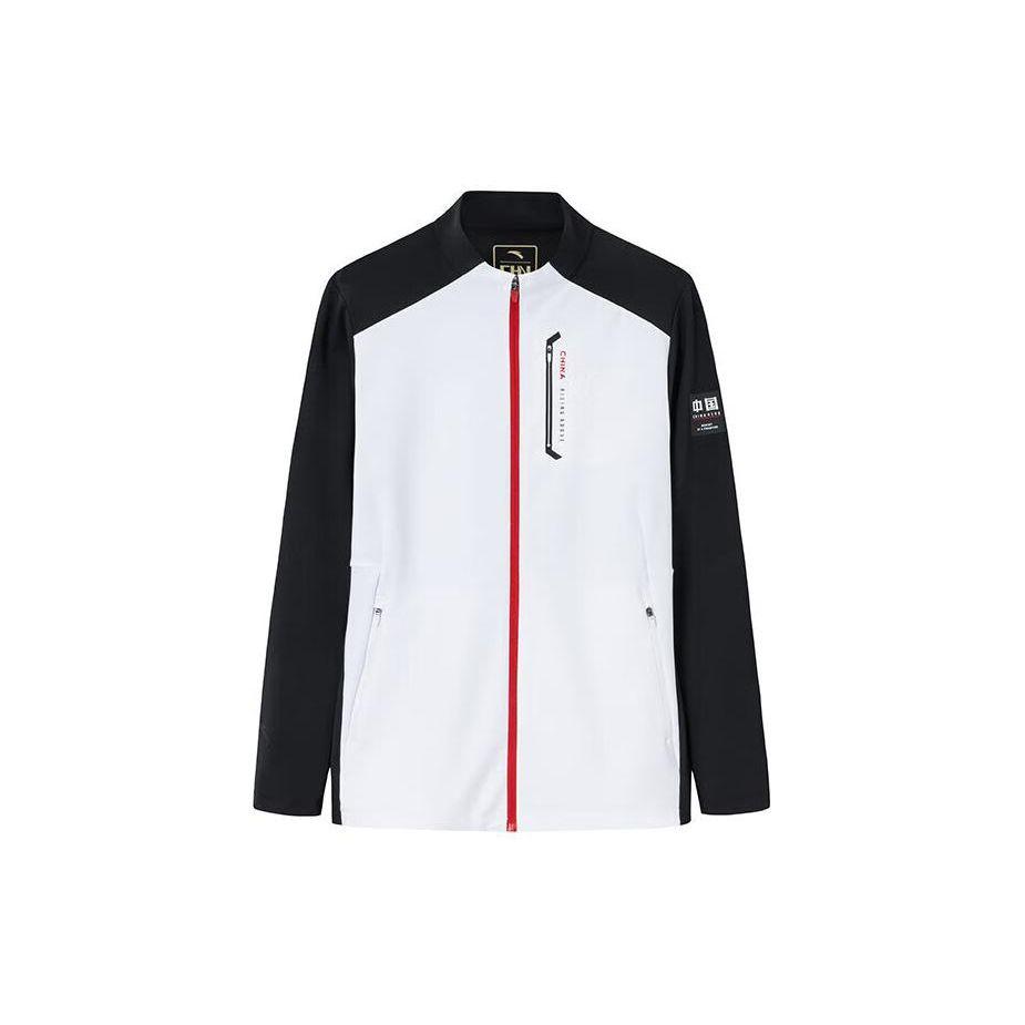 Anta Спортивная куртка для бега с контрастным принтом логотипа и воротником-стойкой, мужская куртка чисто-белая, базовая, черная 152417743S-1