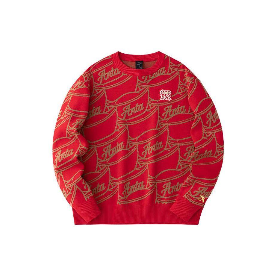 Anta Мужской свитер с длинным рукавом и принтом «Хорошие вещи случаются», насыщенный красный, орехово-коричневый 152418744-2