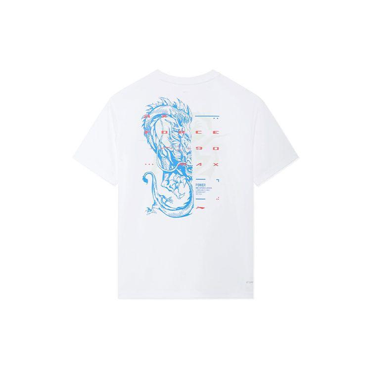 Футболка мужская повседневная с коротким рукавом и круглым вырезом Li Ning Badminton Series с принтом дракона и буквами, стандартная белая ATSSC05-2