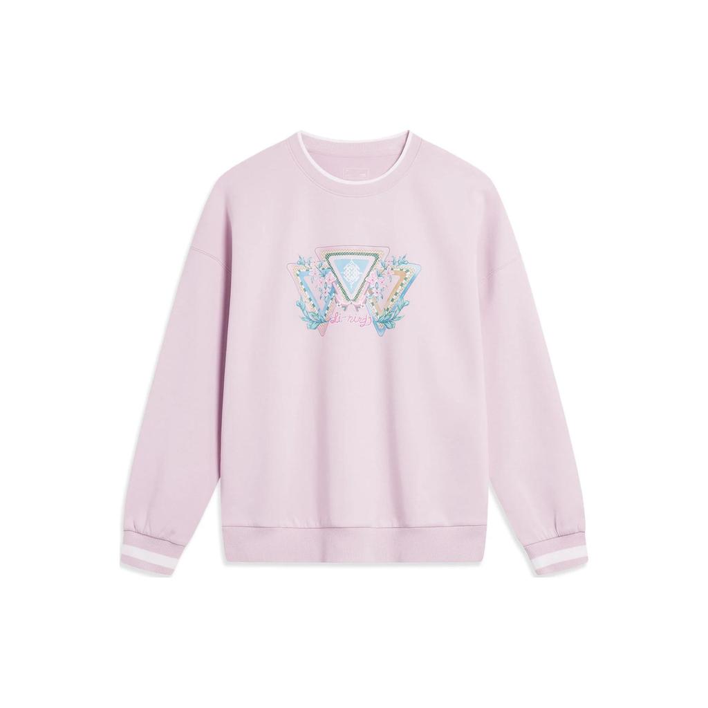 Li Ning Sports Lifestyle Series свитшот с графическим принтом для женщин, цвет лотоса, розовый, фиолетовый, AWDT374-3 — купить товар онлайн с бесплатной доставкой по всему миру!
