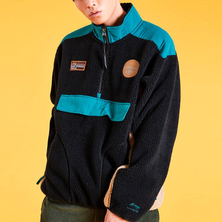 Li Ning Sports Lifestyle Series Casual Color Block Loose Stand воротник Half молния свитер свитшот мужской свитшот стандартный черный AWDP841-1
