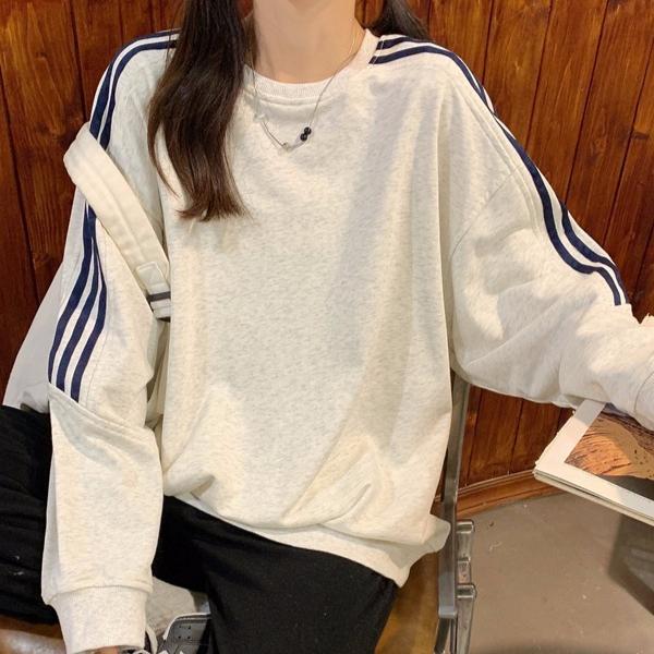 Осенняя толстовка женская свободная полосатая сращивающаяся с длинным рукавом повседневная универсальная женская зимняя одежда женская — купить товар онлайн с бесплатной доставкой до всему миру!