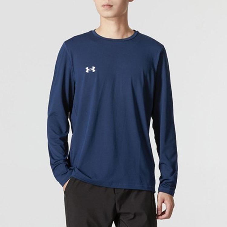 Under Armour Однотонная футболка с круглым вырезом, длинным рукавом и длинными брюками со средней талией, повседневный спортивный комплект для мужчин, синий, черный 22600307-408+23600703-001