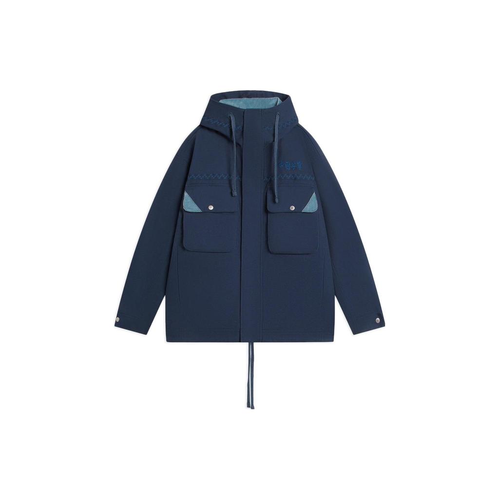 Li Ning China Series однотонная куртка с вышитым логотипом и капюшоном на шнурке унисекс куртка темно-индиго AFDSB71-4