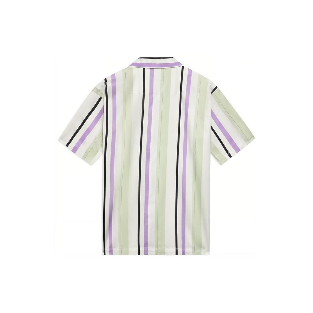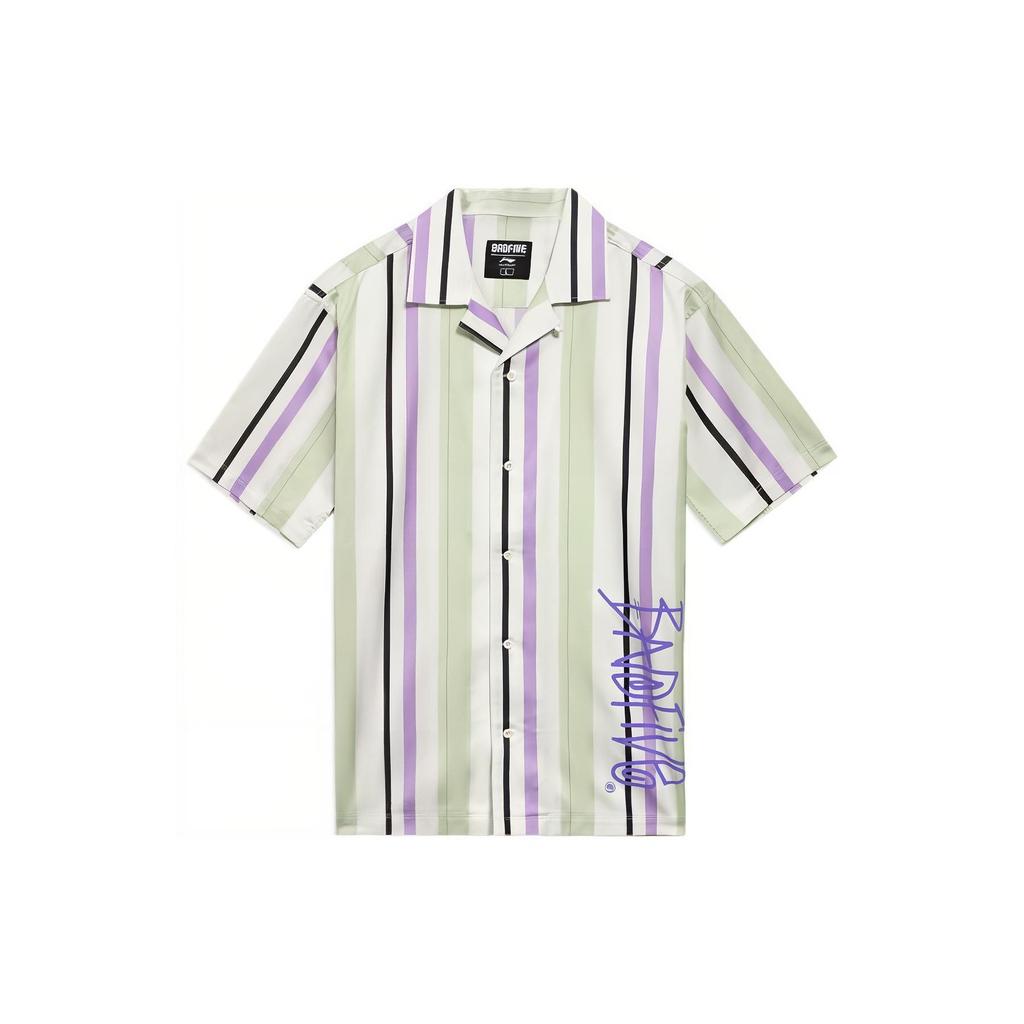 Li-Ning Полосатая хлопковая свободная повседневная рубашка с коротким рукавом Мужские рубашки белого цвета ASHS381-1