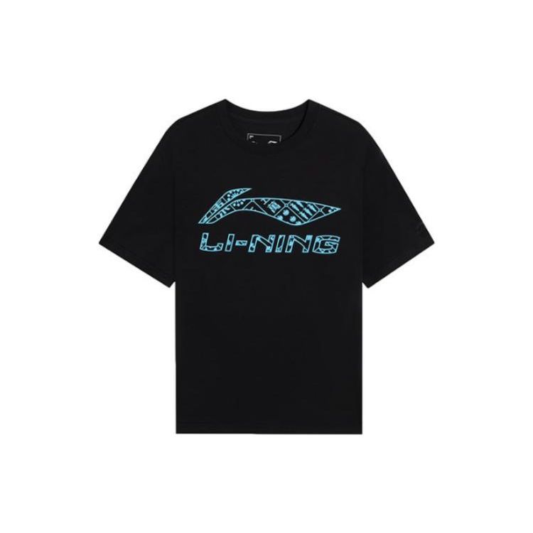 Футболка с коротким рукавом и круглым вырезом Li Ning Sports Lifestyle Series с логотипом и буквенным принтом, мужские футболки черного цвета AHSSE03-2
