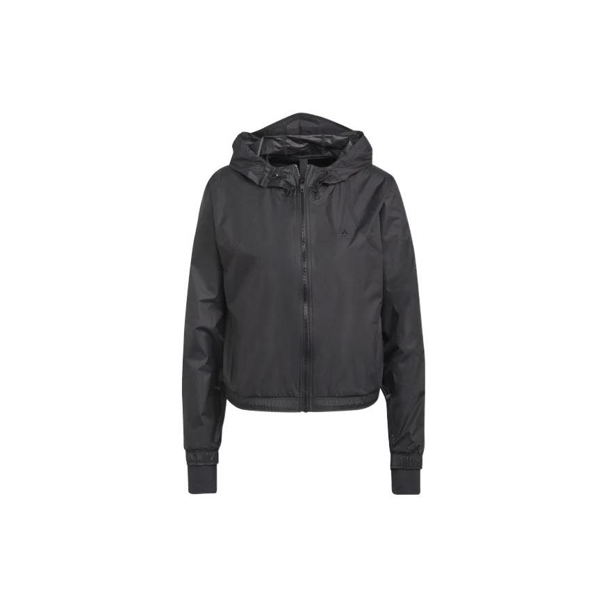Adidas Толстовка с капюшоном на молнии с однотонным логотипом, женская куртка черного цвета H59070