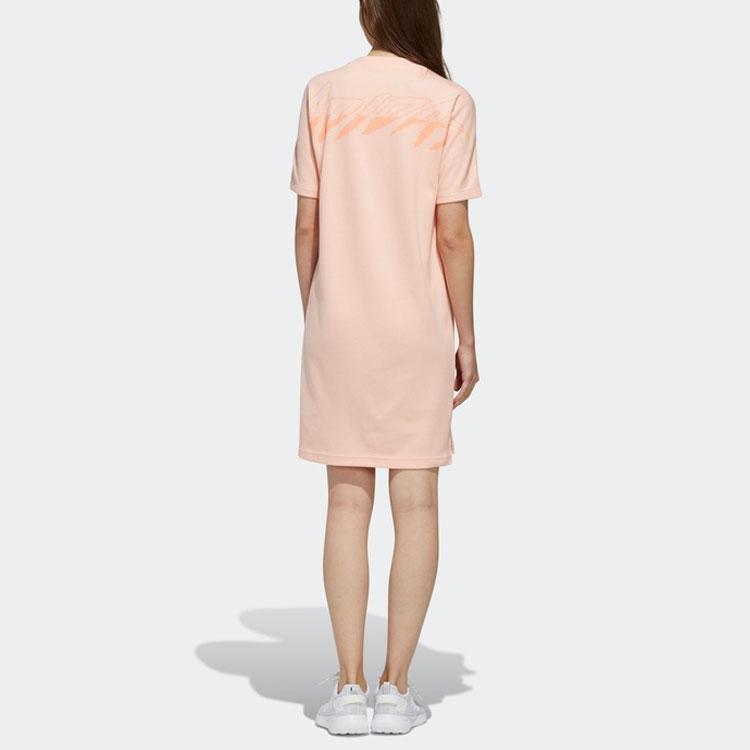 Adidas Платье Neo T с принтом логотипа, повседневное дышащее платье с круглым вырезом и коротким рукавом, женские платья, розовое, FH9316