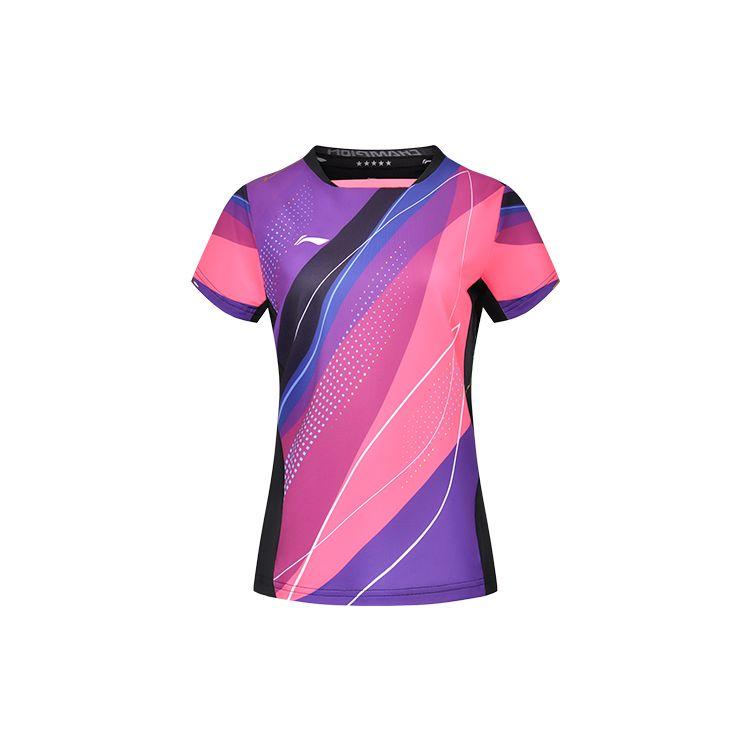Li-Ning Влагоотводящая быстросохнущая футболка с коротким рукавом для соревнований, женские топы, флуоресцентно-розовый цвет лотоса AAYT028-1 — купить товар онлайн с бесплатной доставкой по всему миру!