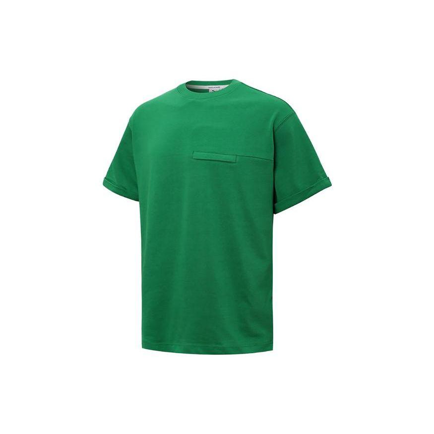 Puma Однотонная повседневная футболка с круглым вырезом и коротким рукавом с вышитыми буквами, унисекс, топы, зеленый цвет 536540-86