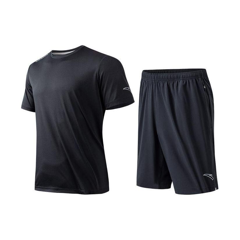 Anta Мужской спортивный костюм с принтом логотипа и круглым вырезом, короткий рукав, черный 952325202-4