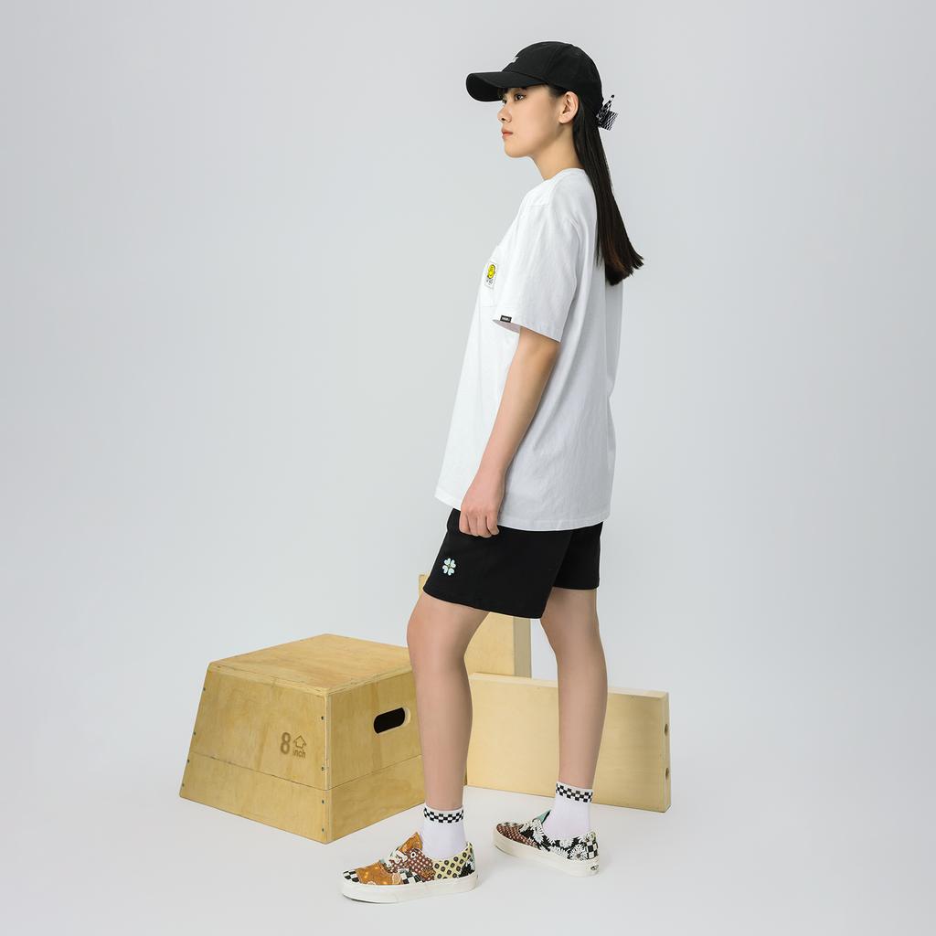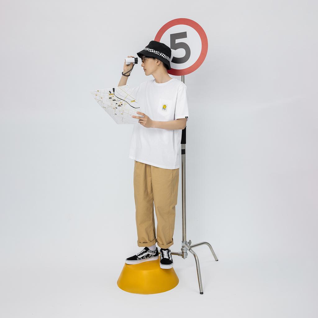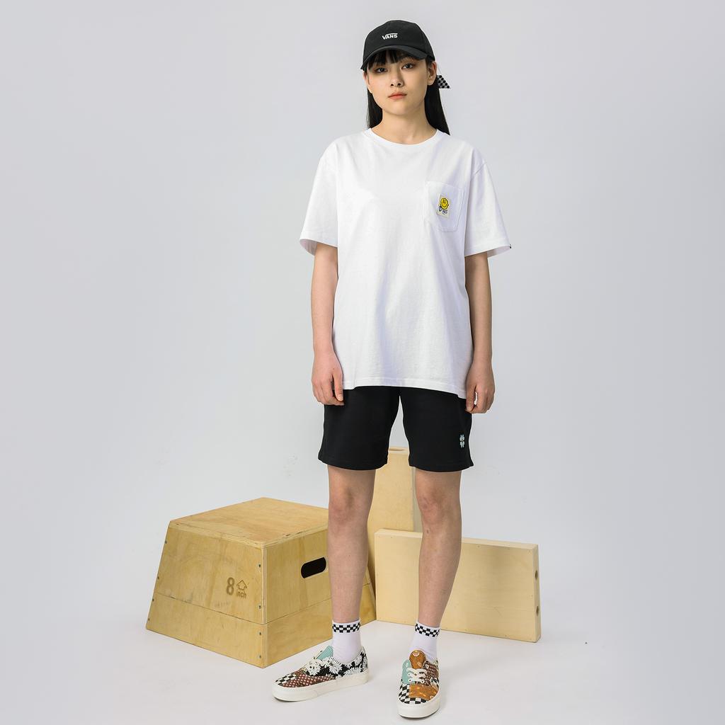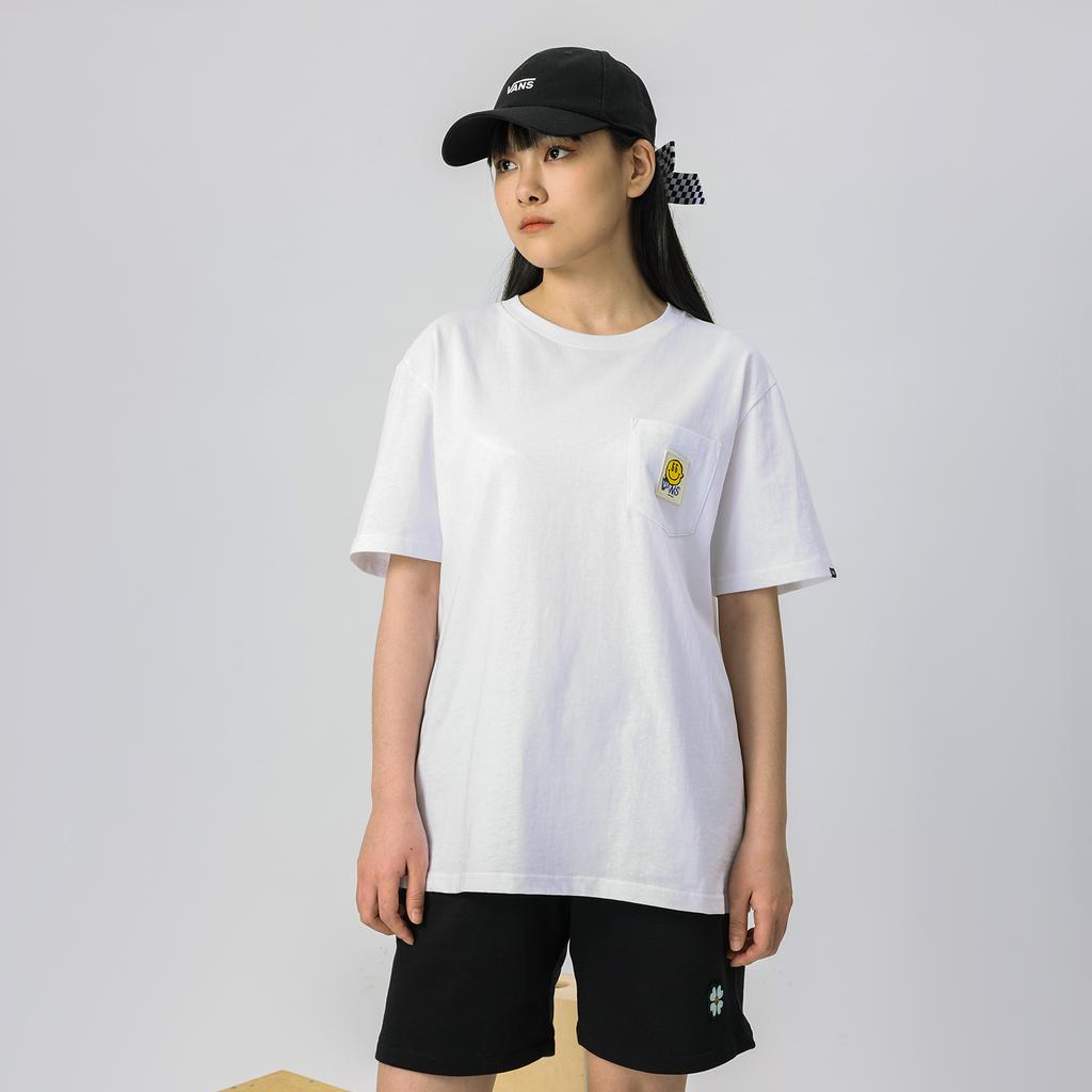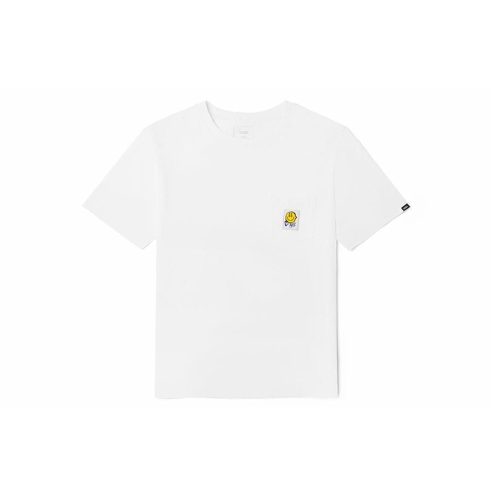 Vans Футболка унисекс с коротким рукавом и заниженной линией плеч, однотонная, с рисунком в виде улыбки, карманом и круглым вырезом, белая VN0A7TPFWHT