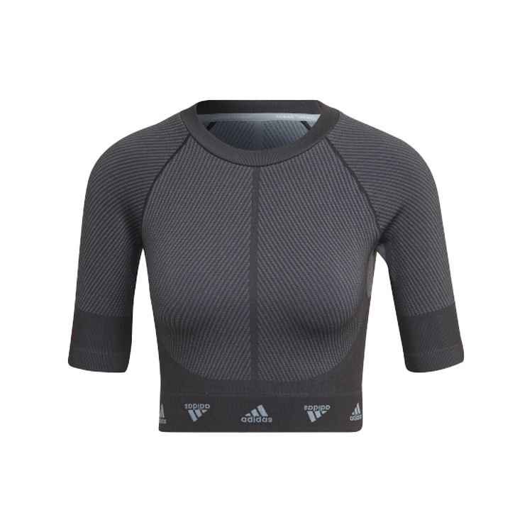 Adidas Wtr Aeroknit T Logo Hemmed Short Sleeve Fitness Top Women tops Black HD9566 — купить товар онлайн с бесплатной доставкой по всему миру!