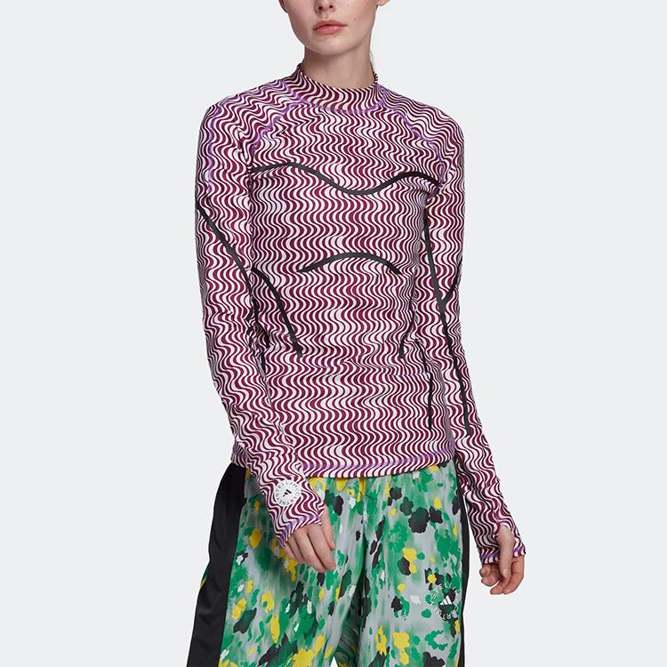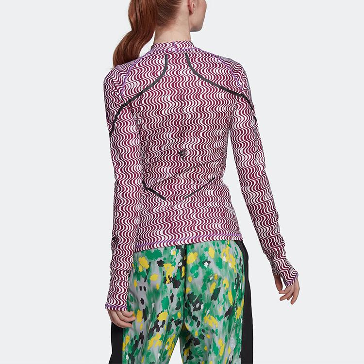Adidas Полосатая облегающая футболка с длинным рукавом, женские топы, фиолетово-красный цвет HI6038
