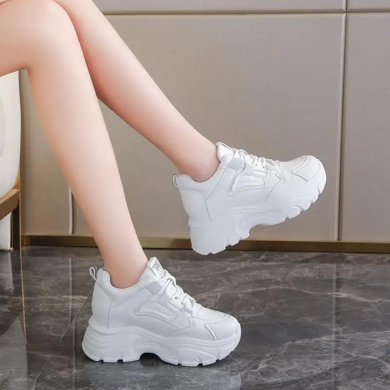 Новые весенние белые женские кроссовки на платформе со шнуровкой и толстой подошвой из вулканизированной кожи, женские дышащие спортивные туфли из искусственной кожи