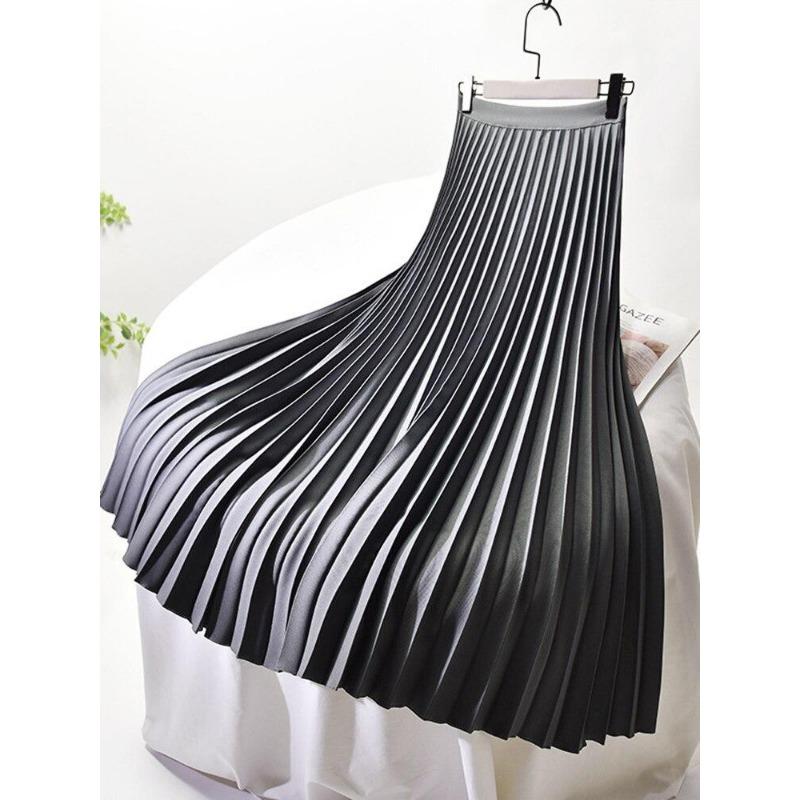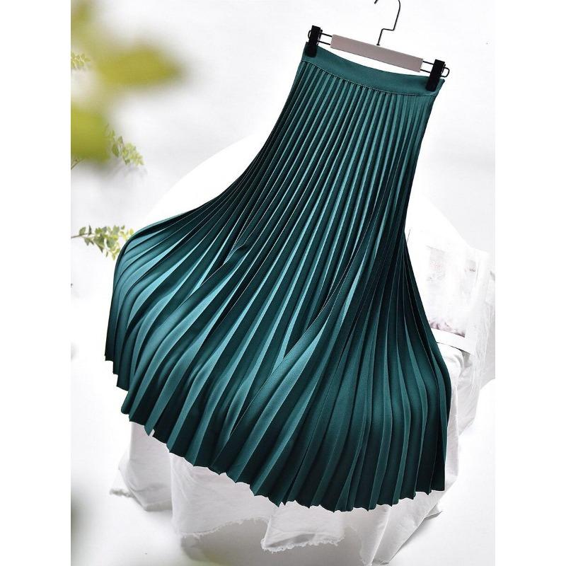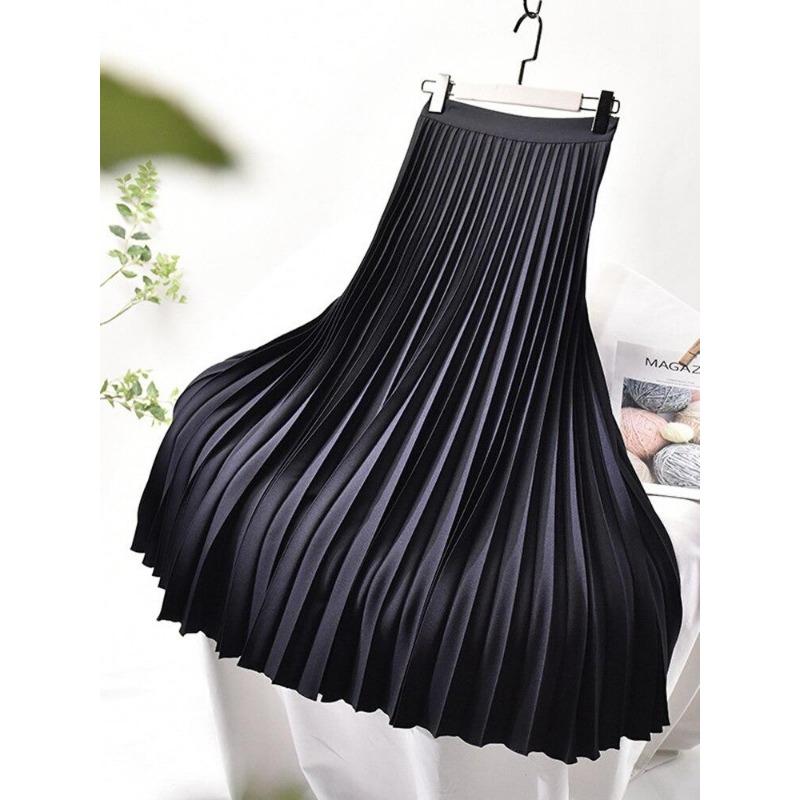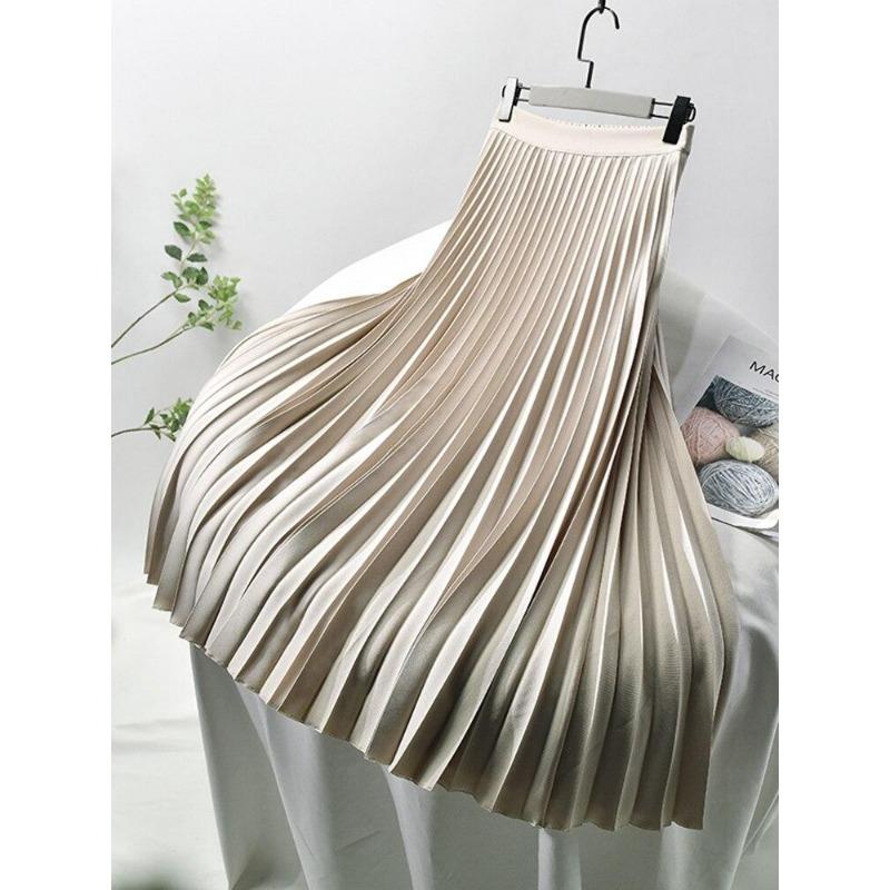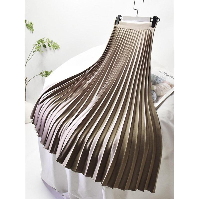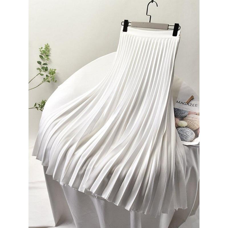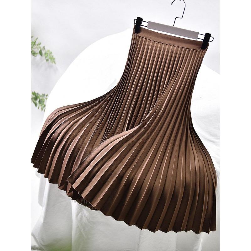Женская весенне-осенняя элегантная шикарная однотонная плиссированная юбка с высокой талией, роскошная мода с эластичной женской