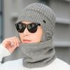 Вязаная шапка и шарф, комплект, мужская зимняя флисовая шерстяная шапка для людей среднего и пожилого возраста, толстая теплая шапка