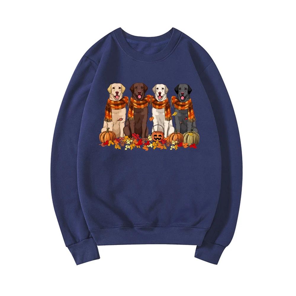 Толстовка с изображением лабрадора-ретривера для собак на День благодарения, осенняя толстовка с капюшоном для собак, подарок для любителей собак, женская толстовка с круглым вырезом, топы с тыквой на День благодарения