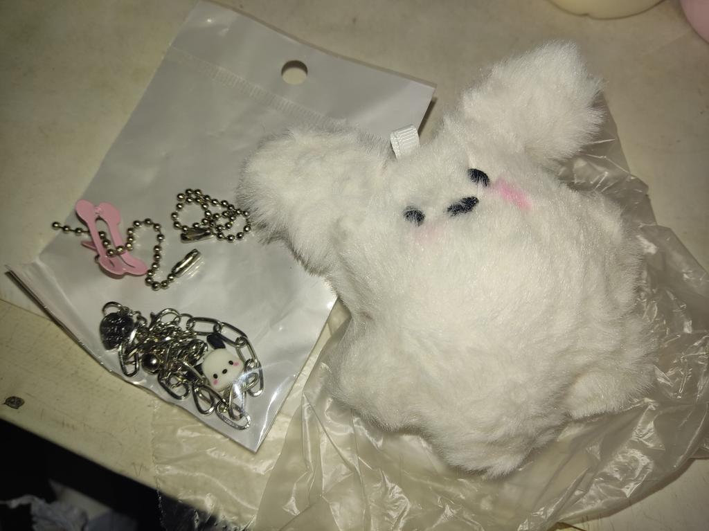 Разочаровал заяц,хотя,вроде,сам по себе милый,но... Ощущение,что его подрезали со всех сторон: уши и лапы короче,почти отсутствуют нижние, шеи нет- предоставленное"ожерелье" слетает,если только удавить-вид несчастный, положили зачем-то 2ую "цепочку",но при этом отсутствует обещанное крепление как брелка... Глаза и нос вместо объёмных деталек вышиты... Ладно,- подруге в заячью коллекцию-брелок особо и не нужен,но всё равно... Прилагаю фото сравнения заявленного и высланного