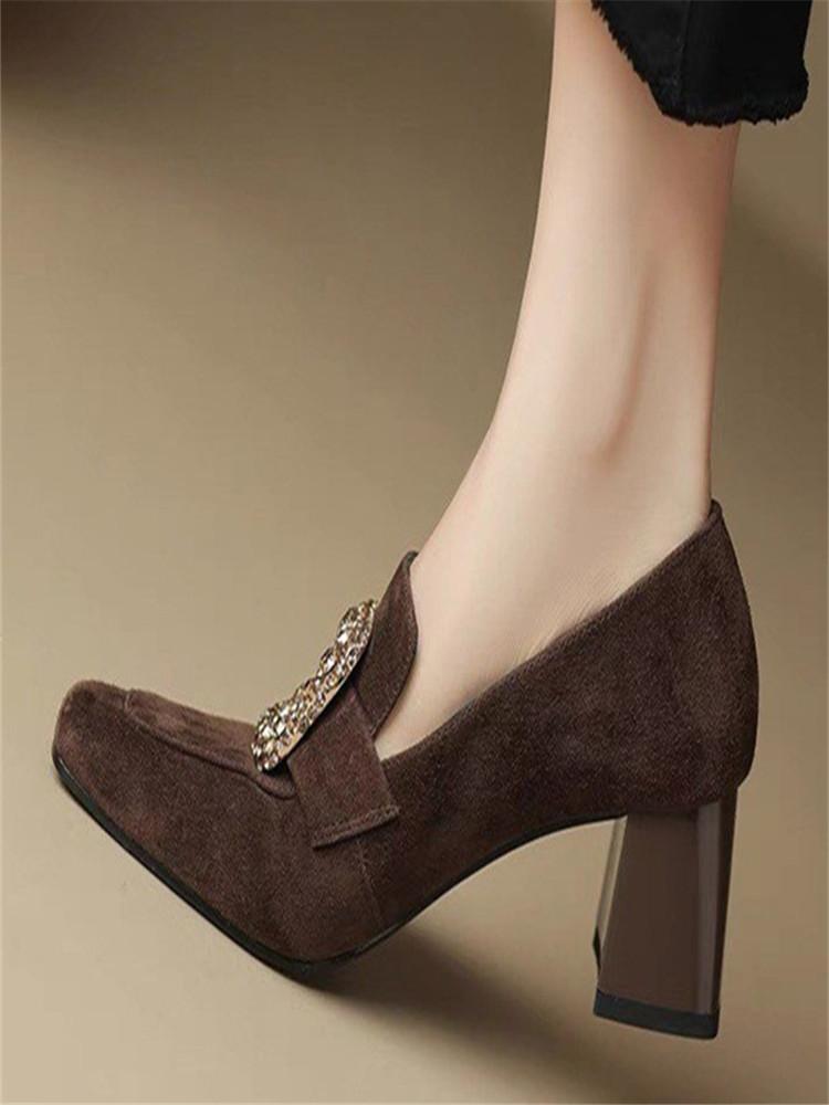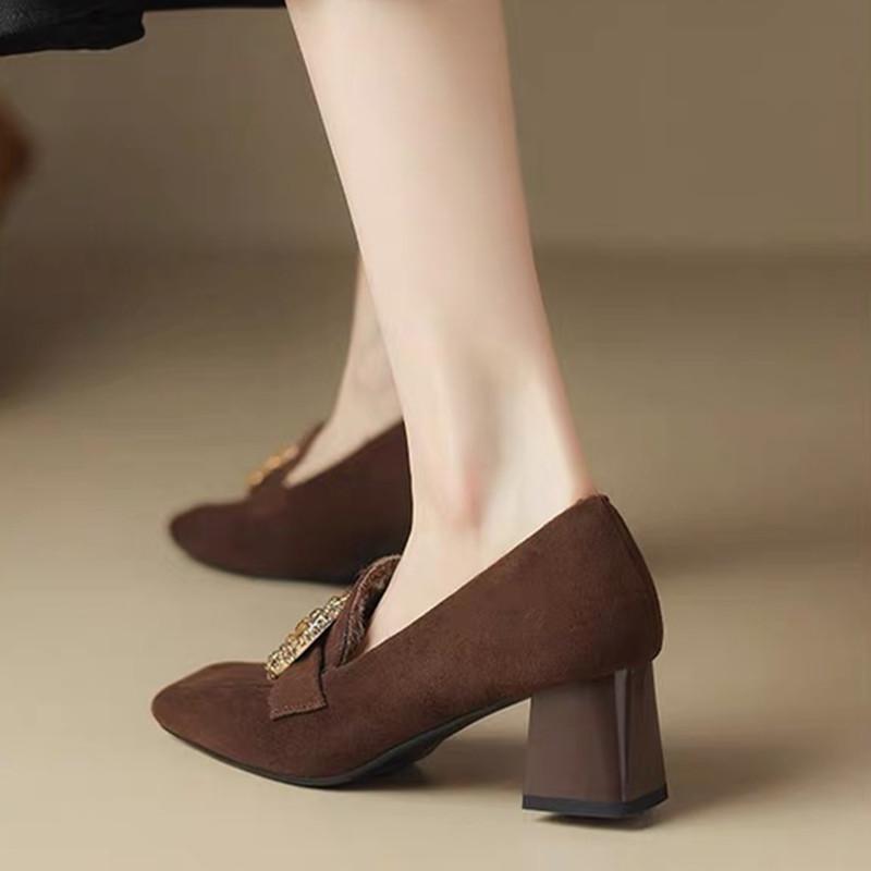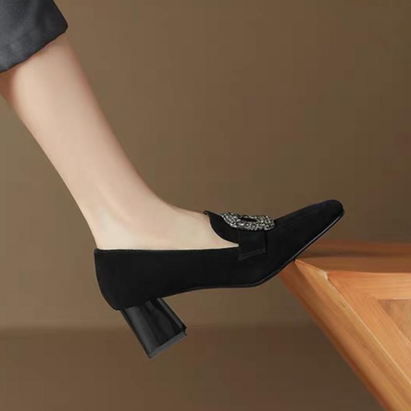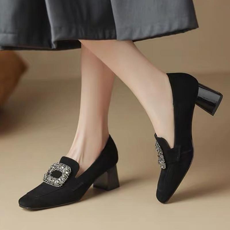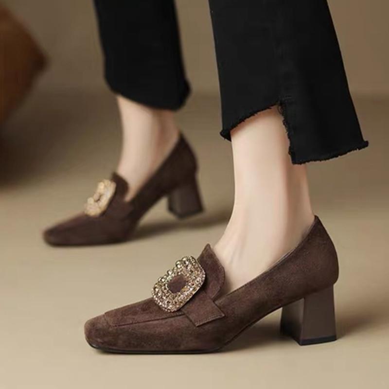 Новые туфли Elegantes на массивном каблуке с квадратной пряжкой и глубоким носком во французском стиле ретро с квадратной головкой