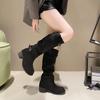 Новые модные замшевые женские ковбойские сапоги в стиле вестерн, дизайнерские длинные сапоги с пряжкой, квадратные толстые каблуки, ковбойские сапоги, женская обувь