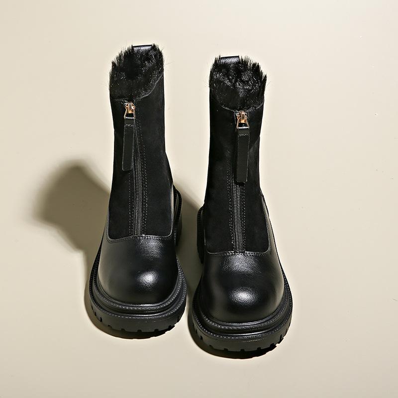 Теплые плюшевые ботинки женские зимние туфли челси замшевые на платформе повседневные женские ботильоны с круглым носком меховые готические ботинки женские коричневые