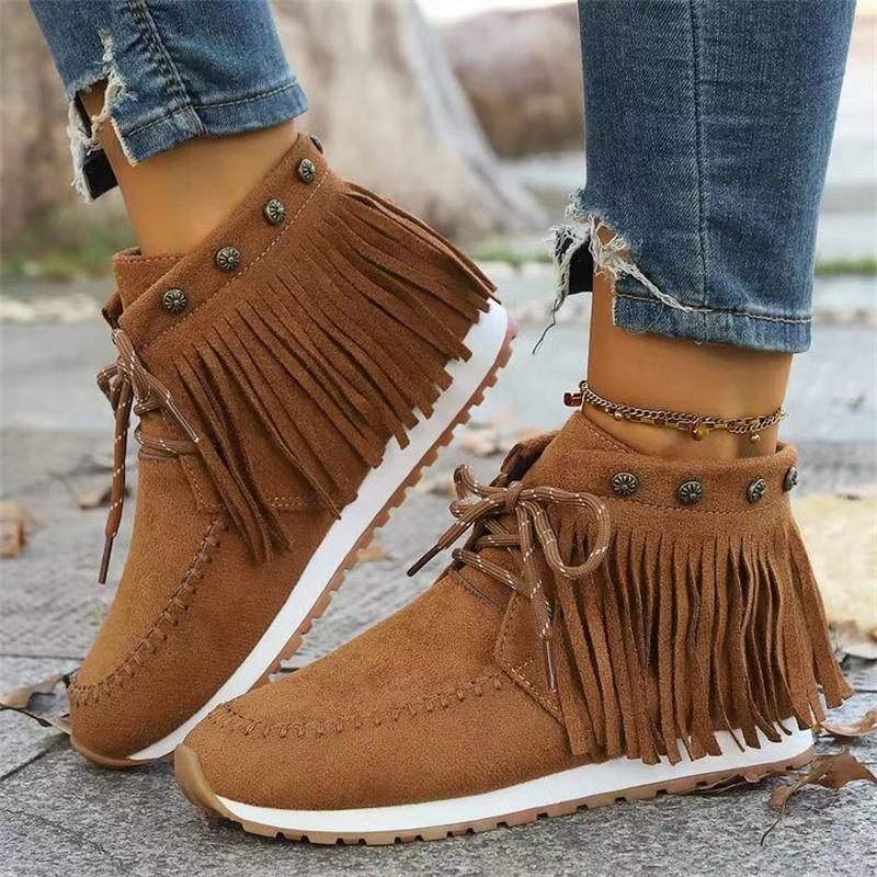 Модные ботильоны на плоской подошве с кисточками, с низким верхом и круглым носком, облегающие повседневные туфли, удобные женские модные ботильоны на шнуровке