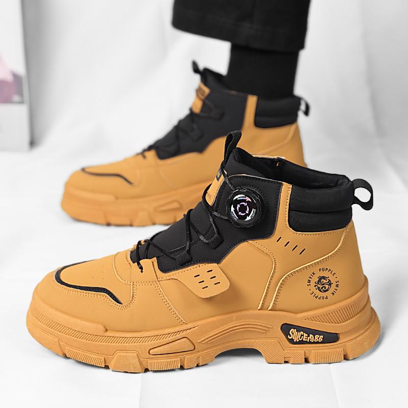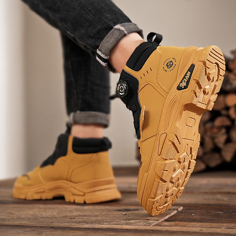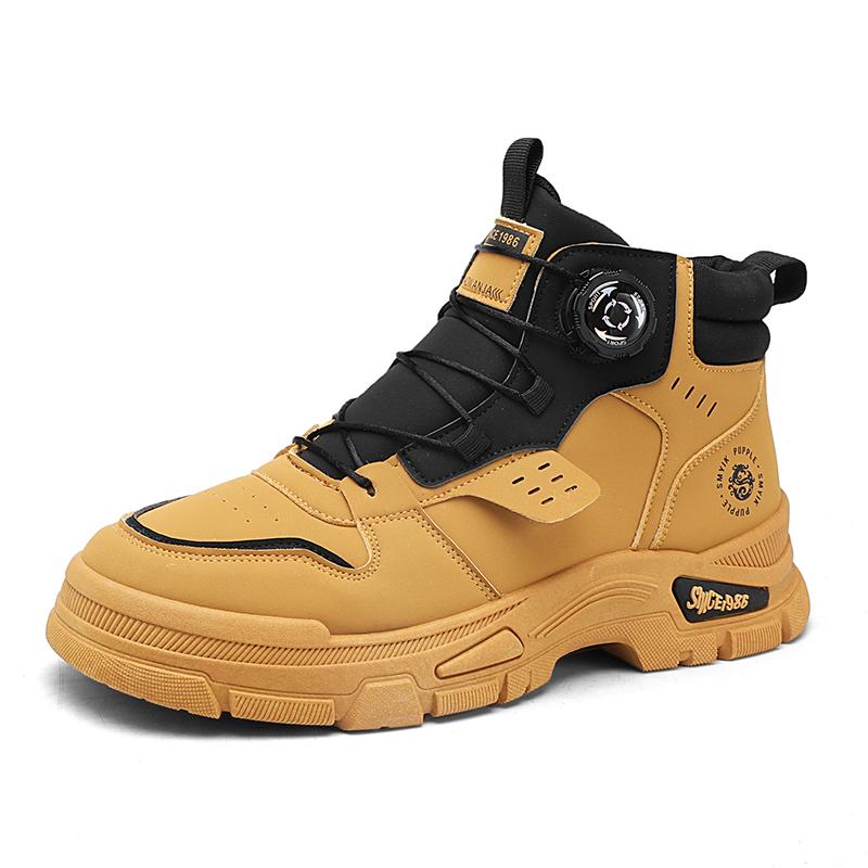 Мужские ботинки осенние и зимние повседневные желтые ботинки нескользящие уличные ботинки с мягкой подошвой модные молодежные рабочие ботинки с вращающимися шнурками