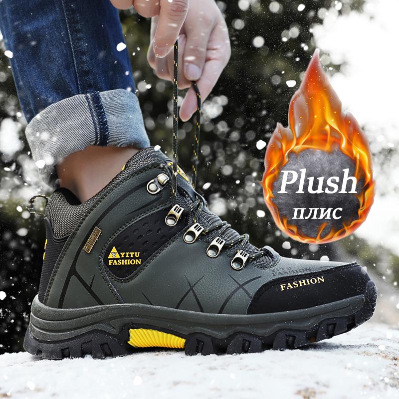Зимние мужские ботинки для снега, водонепроницаемые кожаные кроссовки, супер теплые мужские ботинки челси, нескользящие мужские походные ботинки, размер 39-47